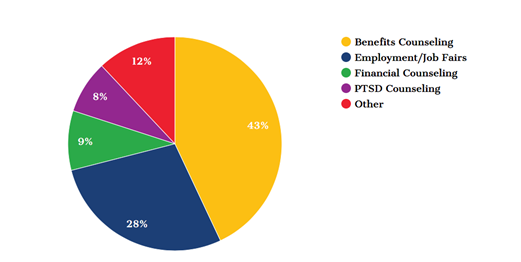 Learn MoreOur Veterans Connection office has grown from serving a small handful of veterans on a weekly basis to more than 40 veterans per week, which equates to more than 2,000 veterans annually.